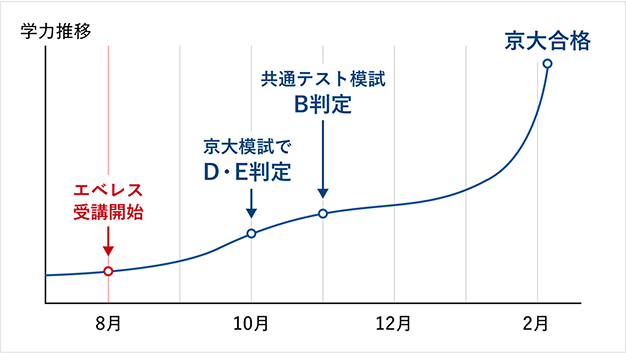 解説が丁寧で、<エベレス>のプロ講師の言葉で伝えてくれるので理解が深まりました。数学では解法の筋道を明確にして教えてくれるので、問題へのアプローチの仕方が身につき、二次試験では150点満点中135点を獲得できました。英語は苦手でしたが、先生のわかりやすい指導で少しずつ克服できました。