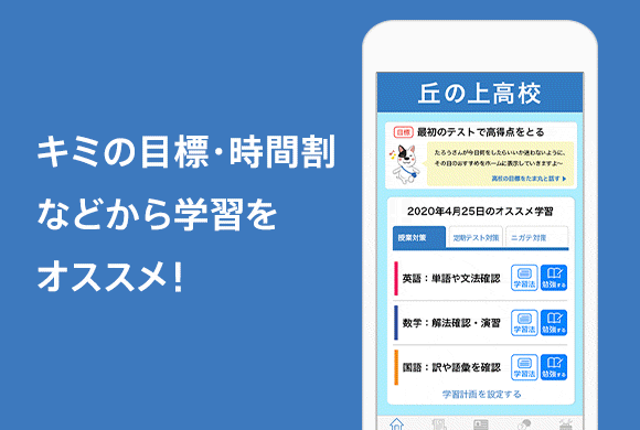 高校のテスト範囲は広くて焦ったけど、スキマ時間でアプリで基礎固めして、『定期テスト予想問題集』で演習をしたよ。テストの最後に出る応用問題もマスターできたから、周りに差をつけられたよ!