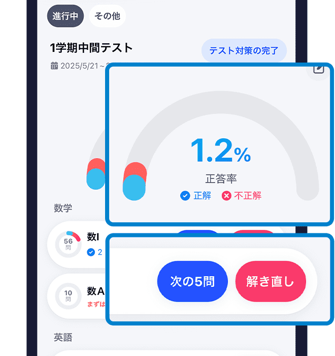 自分が苦手な単元が把握できるし、いい点が取れるようになりました!