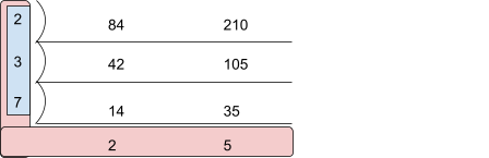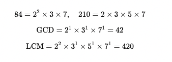 最大公約数(GCD)や最小公倍数(LCM)を出すとき、素因数分解は最も効率的な方法です。例えば「GCD(84, 210)」を求める場合: