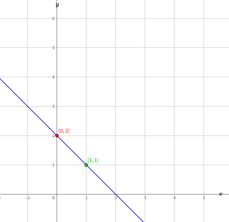 これが「1次関数 y = -x + 2のグラフのかき方」を図で示したものです。