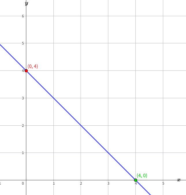 - 1. y軸との交点 (0,4)、x軸との交点 (4,0) をとる