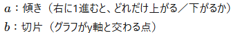 → xを1進めたとき、yがどれだけ変化するかを示す。正のときは右上がり、負のときは右下がり。