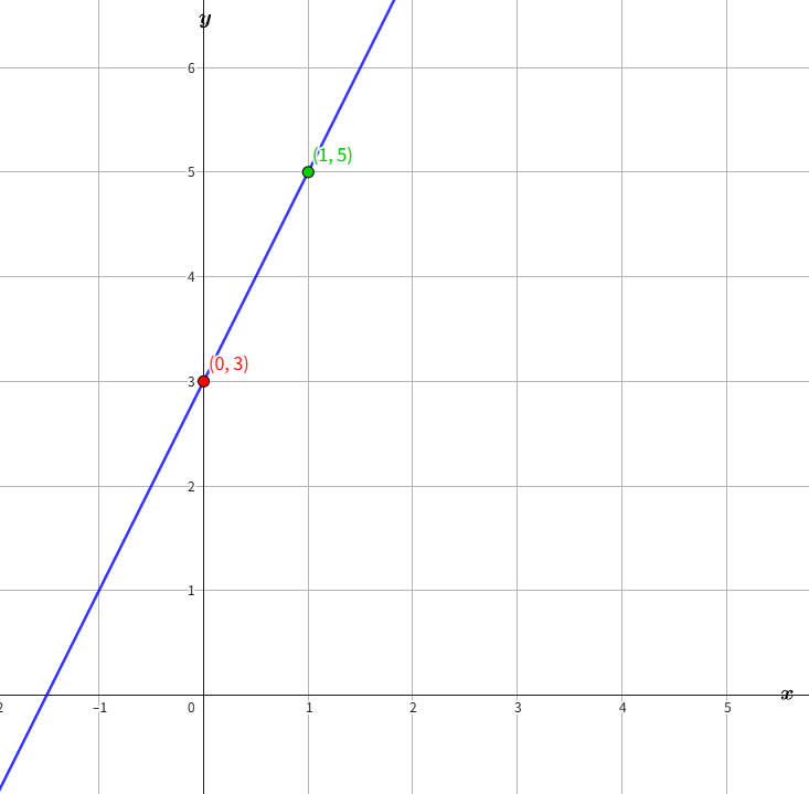y切片3、傾き2 → (0,3) と (1,5) に点を打つ