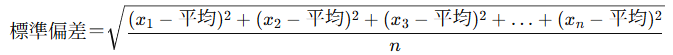 → 平均 → 偏差 → 2乗して平均(分散) → 平方根。