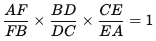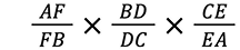 三角形ABCにおいて、辺AB上の点F、辺BC上の点D、辺CA上の点Eが与えられ、その3点が1直線上にあるとき