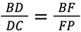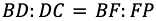 点CからFEに平行な直線を引き、辺ABとの交点Pをとります。