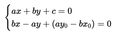 - 例:2x -y + 1 = 0 なら a = 2, b = −1, c = 1