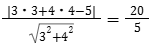 点 P(3,4) と直線 3x + 4y -5 =0の距離を求めよ。