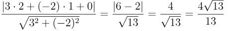 → 点の座標を直線の式に代入して、分子を絶対値にする。分母には直線の傾きから決まる調整項を入れて割る。この流れで答えが出る。