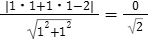 → 点 (1,1)は直線 x + y = 2 上にあるため、距離は0。