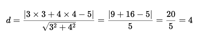 点 (3,4)、直線 3x + 4y −5 = 0 の場合: