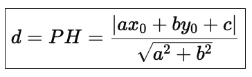 から直線 ax + by + c = 0 に下ろした垂線の足を H