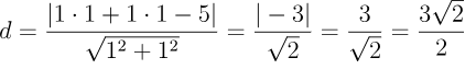 点(1,1)、直線 x + y −5 = 0の場合: