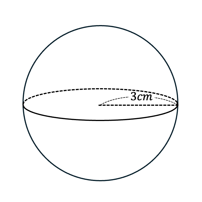 これは、半径3cmの球です。この球の体積は
