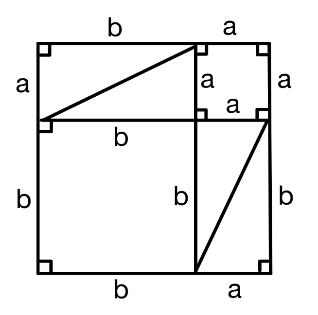 2つの正方形(一辺 a と一辺 b)と4つの直角三角形に分割します。