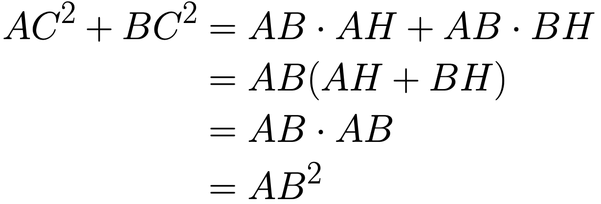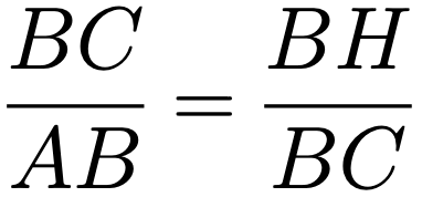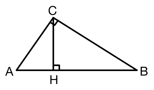 直角三角形ABCで、∠C = 90°、斜辺ABに頂点Cから垂線CHを下ろします。