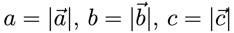 a = BC, b = AC, c = AB とすると: