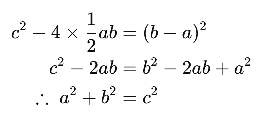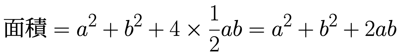 この配置の工夫により、視覚的に a2 + b2 = c2 が理解できます。