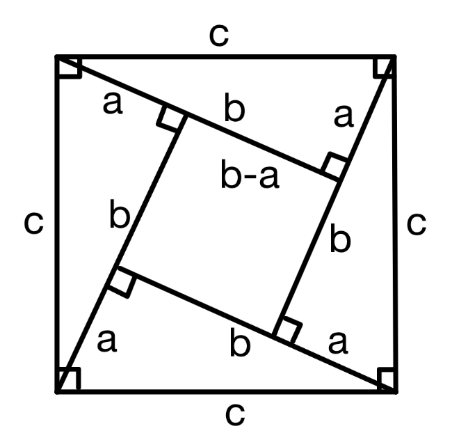- 4. 外側の正方形から三角形4つを引いた面積が (b - a)2 に等しいことを示す