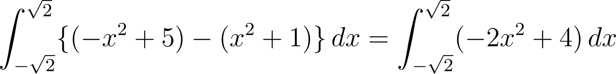 - 左の交点の x 座標を α、右の交点の x 座標を β とできる