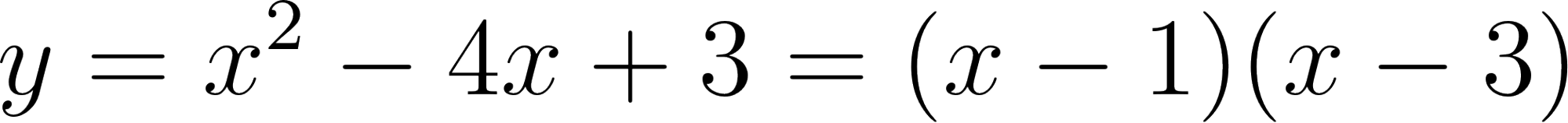 - 二次関数のグラフとx軸が、x = 1 と x = 3 で交わっている